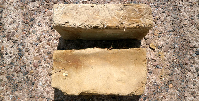 Ungebrannte Lehmsteine (Grünlinge) sind in unterschiedlichen Mengen vorrätig.