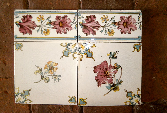 Wandfliesen, weiß, entweder quadratisch oder achteckig mit kleinen, blauen Quadraten. Sie haben wunderschöne Haarrisse in der Oberfläche (Krakelierung), sind mindestens 100 Jahre alt und von Mörtelanhaftungen befreit. Da auch die Rückseiten gereinigt sind, können sie mit normalem Fliesenkleber verlegt werden. Auch verschiedene Bordüren in Weiß oder Blau und Motivfliesen stehen zur Verfügung. Unser Lagerbestand reicht für komplette Bäder, aber auch Fliesenspiegel in der Küche wirken hervorragend mit diesem Material.